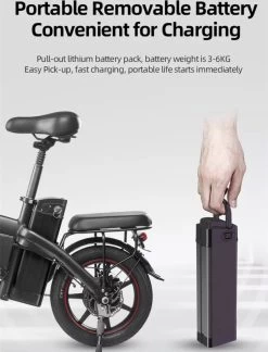 De DYU A5 eBike is gebouwd op een groter ultralicht frame van aluminiumlegering met een draagvermogen van 120 kg en een 3-traps ultracompacte vouwmogelijkheid. De A5 is uitgerust met een handige verwijderbare lithiumbatterij voor eenvoudig snel opladen.