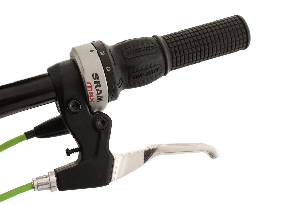 De bike is uitgerust met een SHIMANO derailleurgroep voor 21 versnellingen, die u comfortabel en intuïtief kunt bedienen met behulp van de SRAM-draaischakelgrepen. Door het volledig geveerde frame houdt u ook op oneffen terrein perfecte controle. Met twee schijfremmen kunt u in elke situatie veilig afremmen.