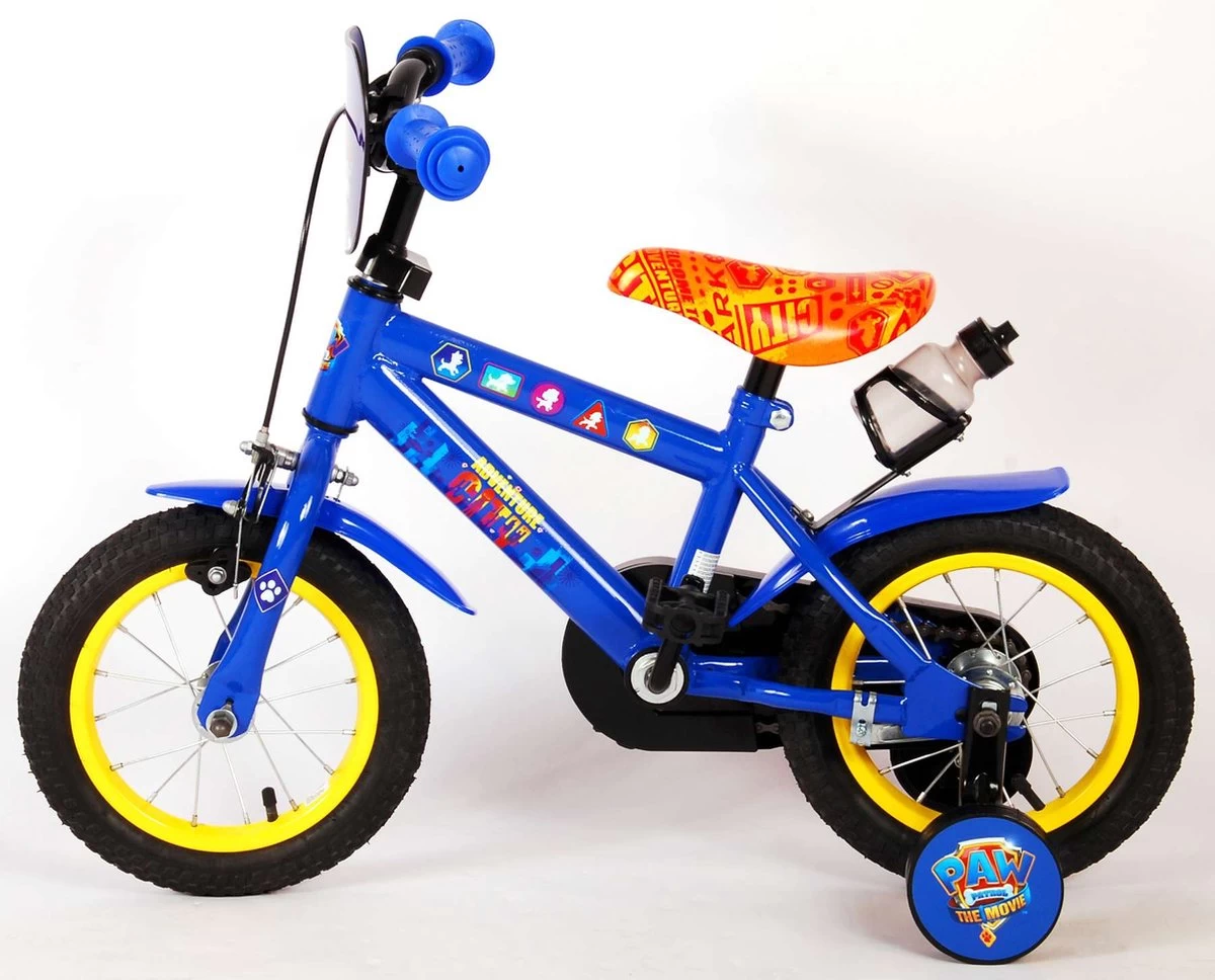 Veiligheid staat voorop! Daarom heeft deze gave fiets een handrem, een terugtraprem, gesloten kettingkast en afneembare zijwieltjes. Daarnaast heeft de fiets een bidonhouder met bidon. De mooie blauwe Paw Patrol fiets heeft een comfortabel zacht zadel en een super stevig frame. Om zo lang mogelijk van de fiets te kunnen genieten zijn het zadel en stuur in hoogte verstelbaar. De 12 inch Paw Patrol fiets is voor 85% afgemonteerd.